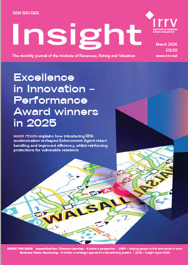 The January/February issue of Insight, the monthly journal published by the Institute of Revenues, Rating & Valuation, with news and views from the worlds of Revenues, Rating, Valuation and Benefit Administration, is available to IAAO members. In this issue: -