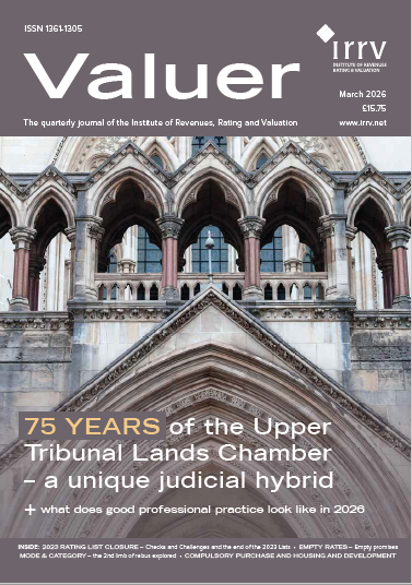 The March issue of Valuer, the quarterly technical publication for professionals in real estate valuation and rating published by the Institute of Revenues, Rating & Valuation, is available to IAAO members. Inside this issue:Valuer features the work of the judicial hybrid that is the Upper Tribunal Lands Chamber, as well as ‘What does professional practice look […] -